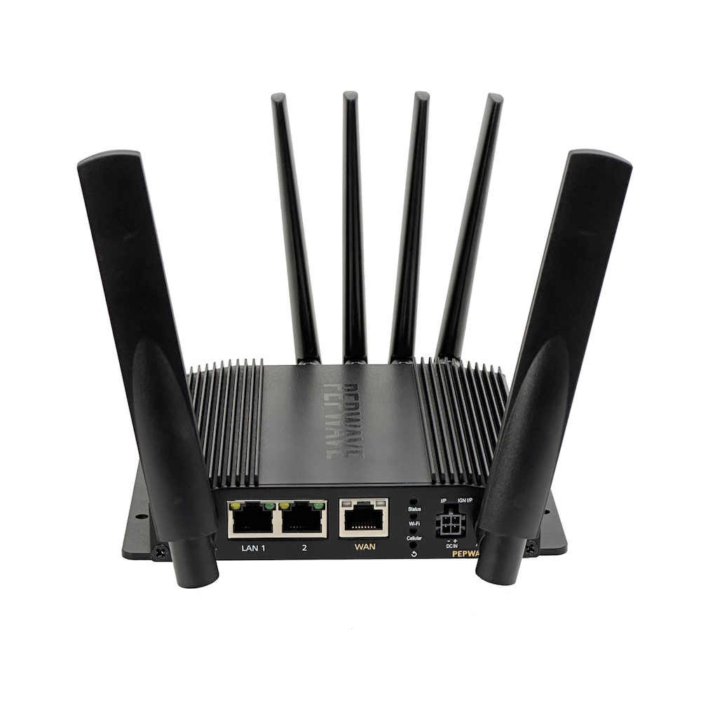 The Peplink BR1 Pro 5G is the highest-performing 5G single-modem router for mobile installations. Modem supports both 5G and CAT20 LTE for global support. Supports 1 Gbps of throughput, 400 Mbps of tunnel capacity, two 1 GbE LAN ports and one 1 GbE WAN port for Starlink.